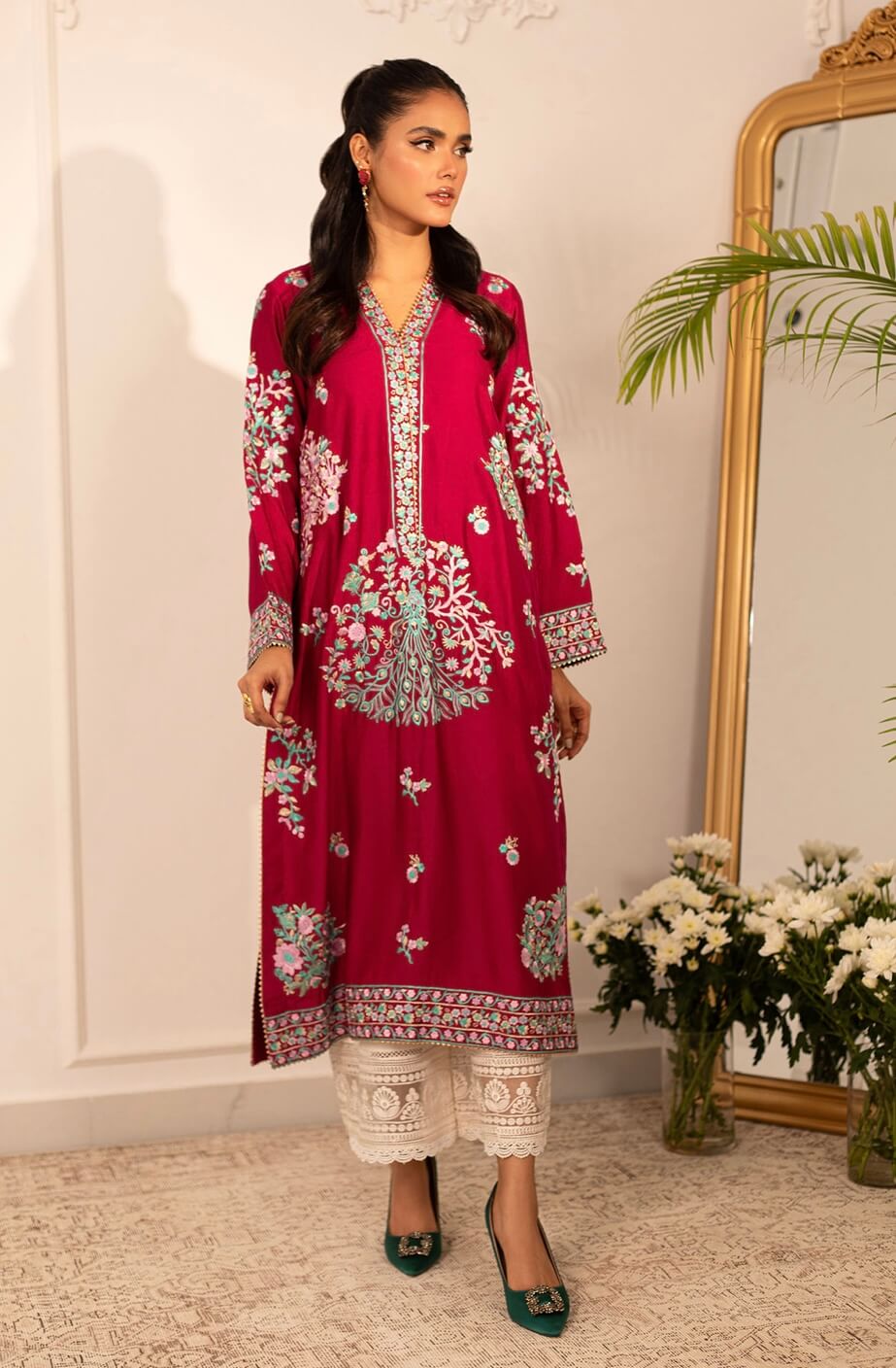 PRODUCT DETAILS 2Pc Ready to deliver Color: Fuchsia Fabric: Cotton Net Work Details: Embroidered Long silhouette cotton...