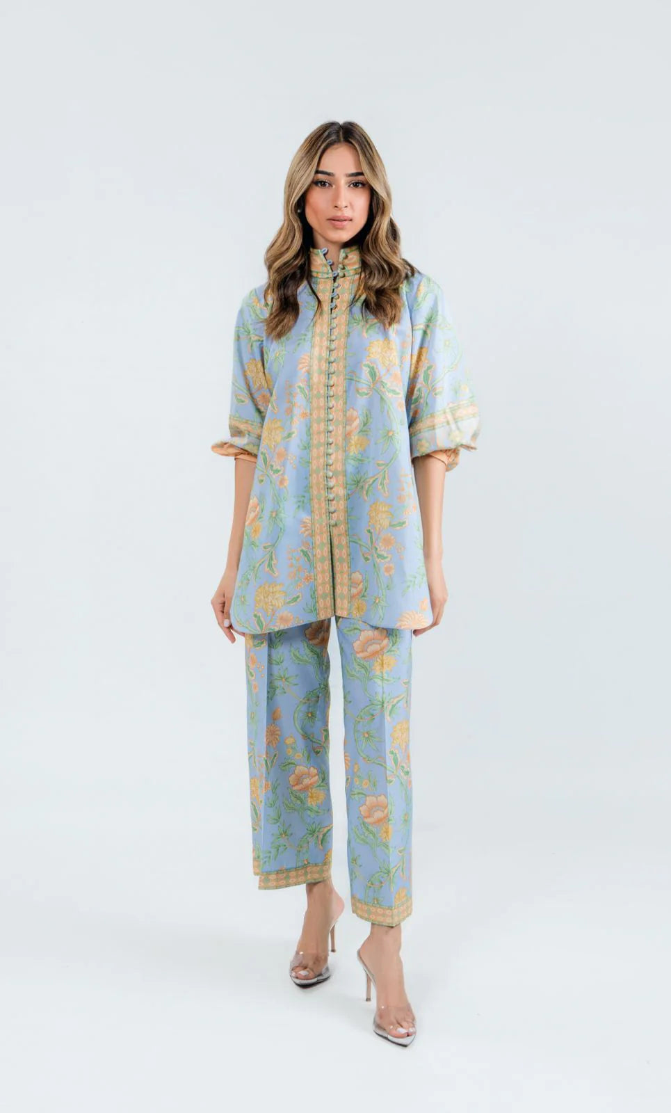 PRODUCT DETAILS 2Pc Ready to wear Colour: Blue Includes: Two-piece Printed Co-ord Set Fabric: Cotton Silk Blend –...