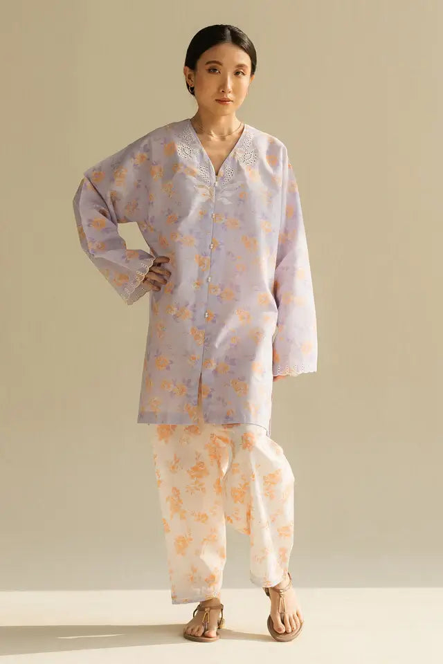 PRODUCT DETAILS 2PC Ready to wear TOP- CAMBRIC BOTTOM- CAMBRIC Our lilac printed cropped kurta features beautiful...