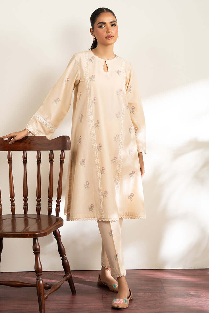 PRODUCT DETAILS 2PC Ready to wear Colour: Peach Fabric: Cambric Work details: Embroidered Expertly crafted, the RUGBY TAN...