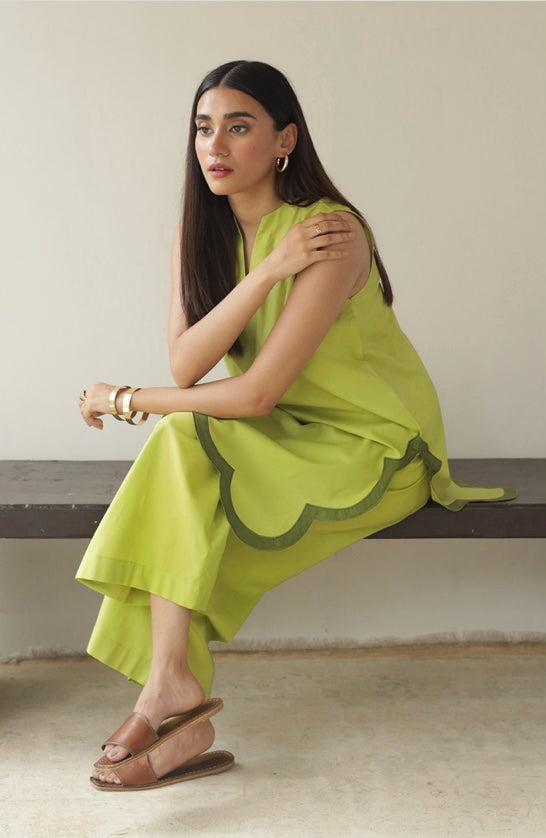 Material: Lawn Cotton. 2-Pc (Straight Kameez & Culottes)