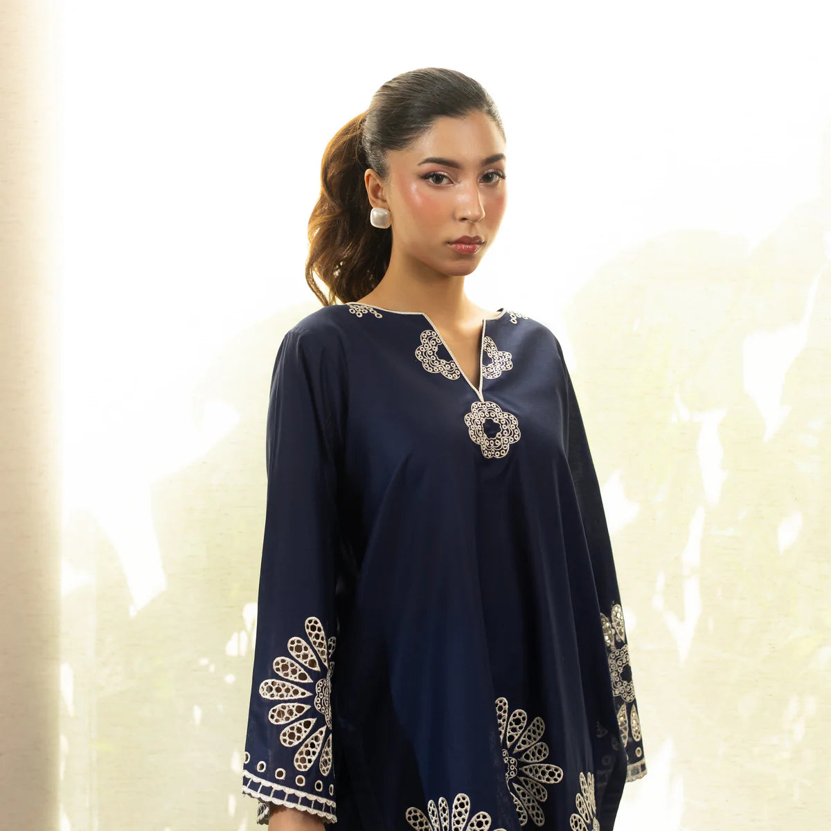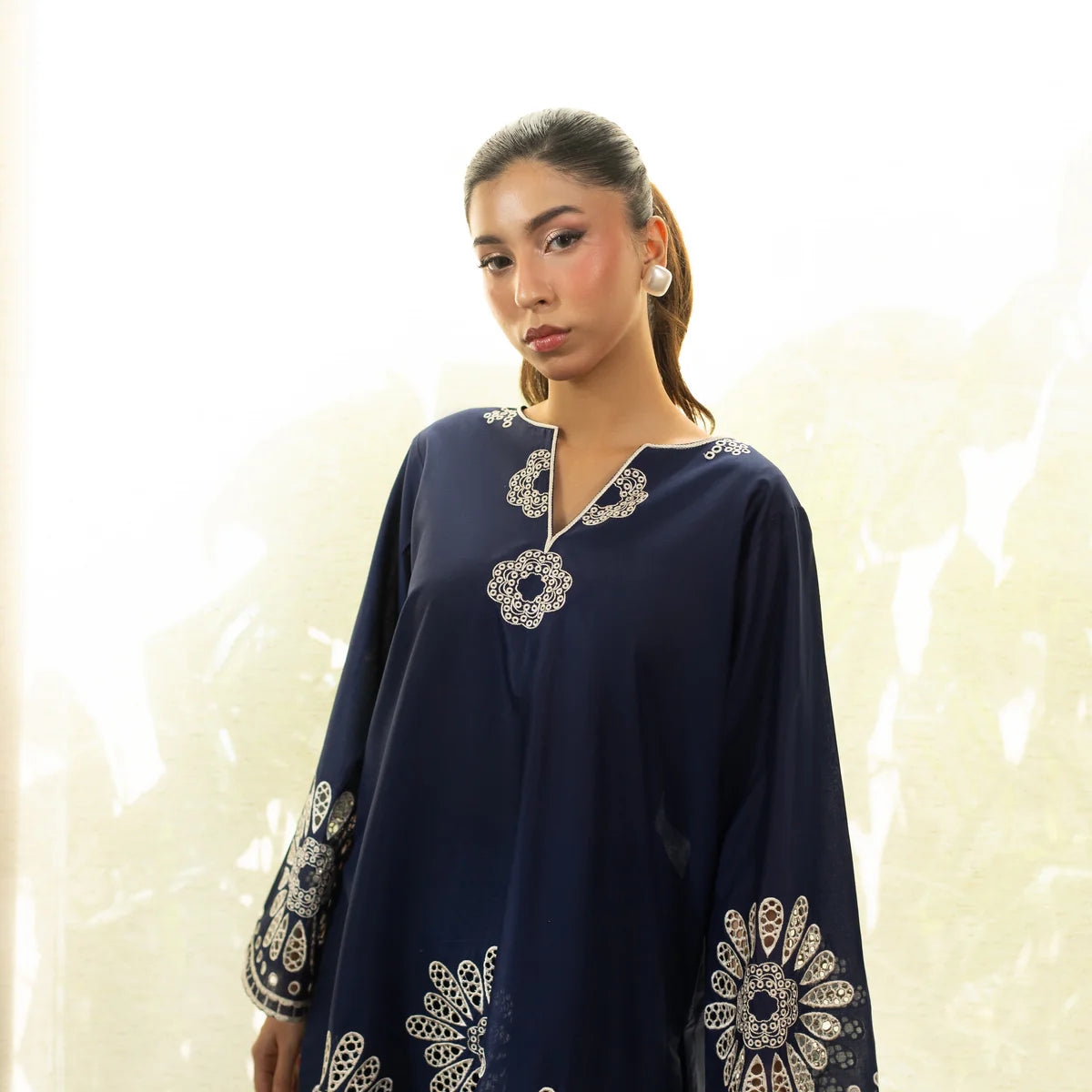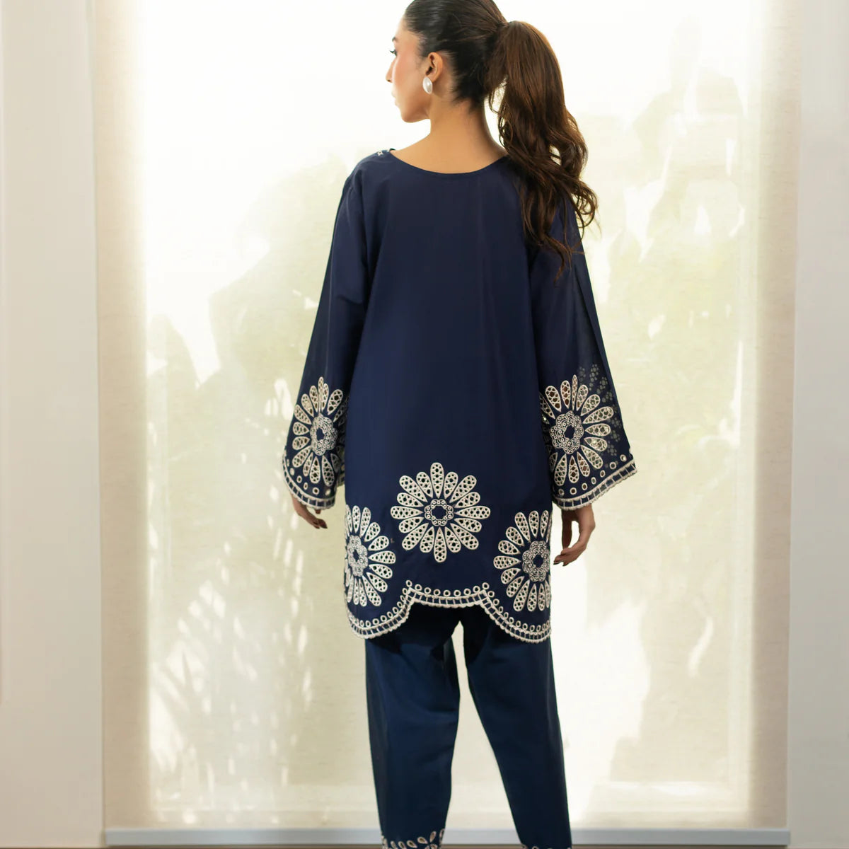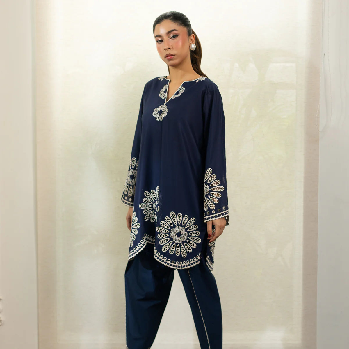 2Pc Ready to wear Lightweight, flowy, and finished with soft floral detailing, this navy silhouette is made...