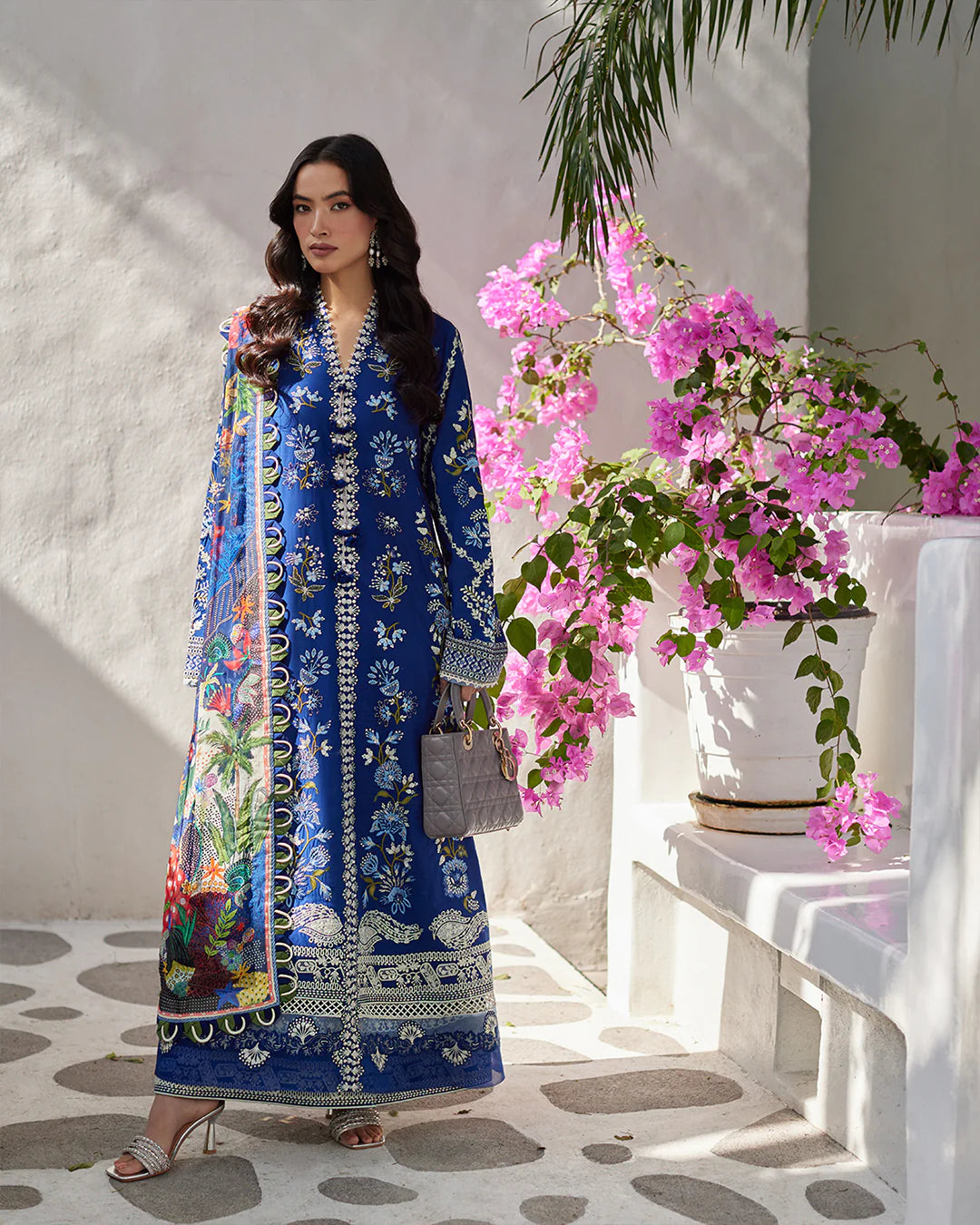 PRODUCT DETAILS 3PC Unstitched Color: Cobalt blue Showcasing a visual symphony, Veira is a spectacular cobalt blue shirt...
