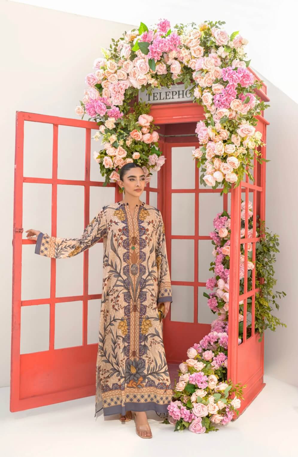 SIA is a gracefully elongated kaftan, crafted from premium double georgette for a luxurious drape and fluid movement. This statement piece showcases a mesmerizing depiction of nature’s harmony, illustrating the intricate creation of honeybees, pineapples, grapes, and frogs intertwined with delicate, flowing stems that dance across the fabric. Designed as a one-piece ensemble, SIA embodies modern elegance, seamlessly blending artistic storytelling with contemporary fashion.