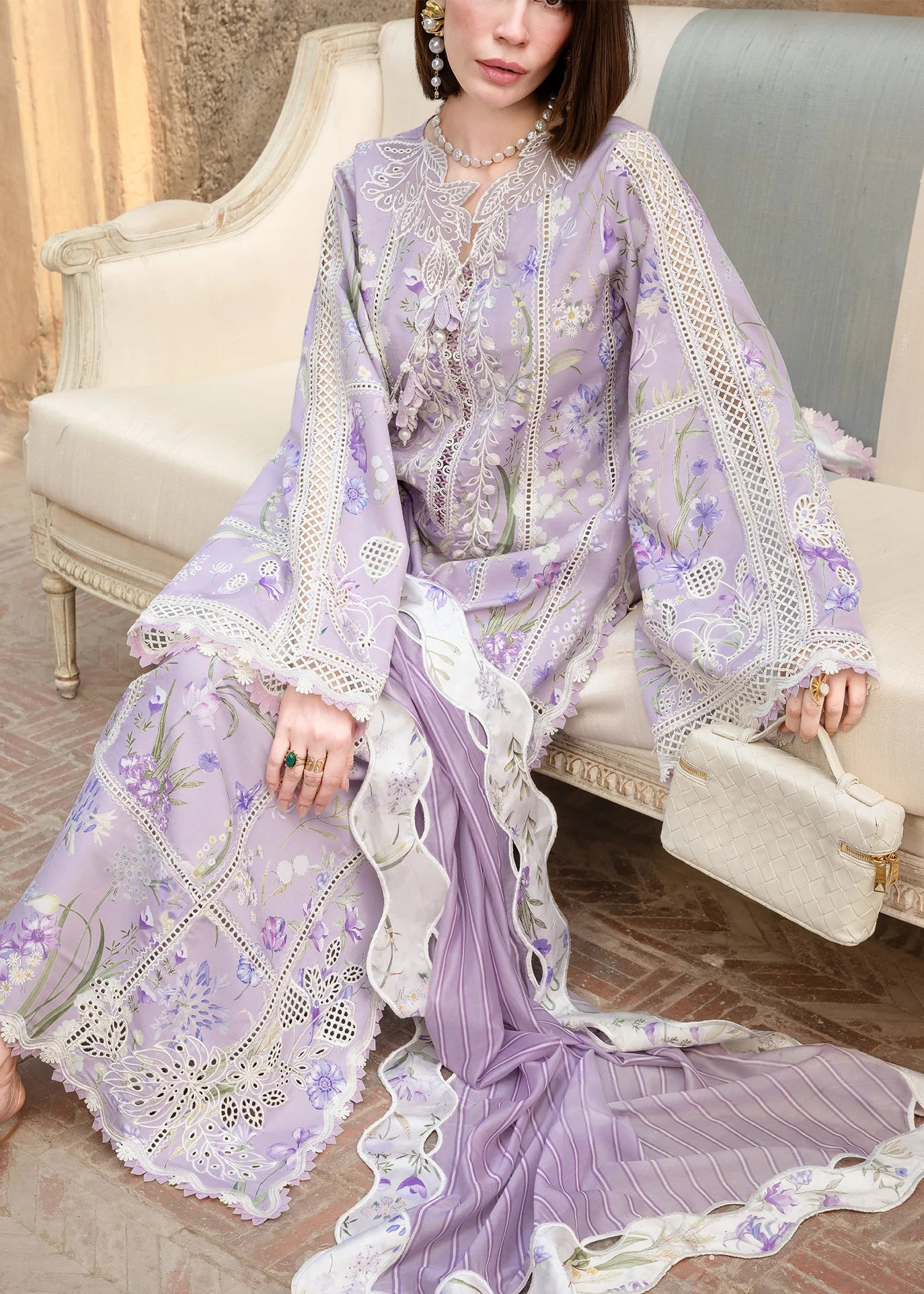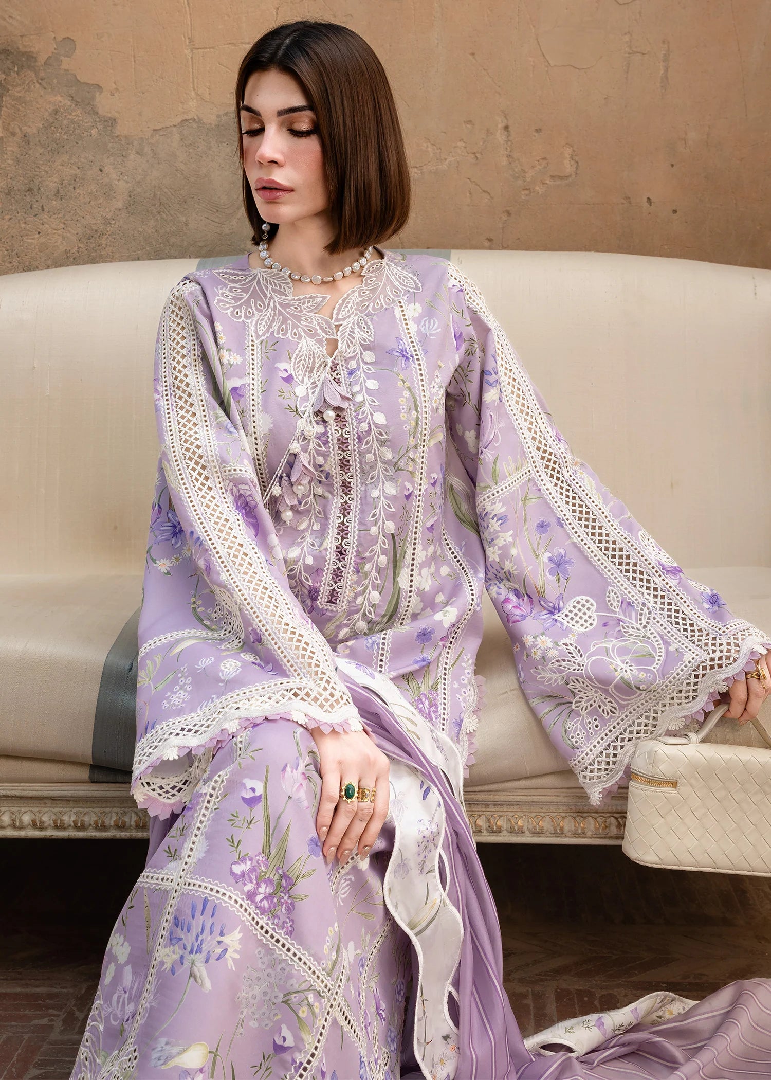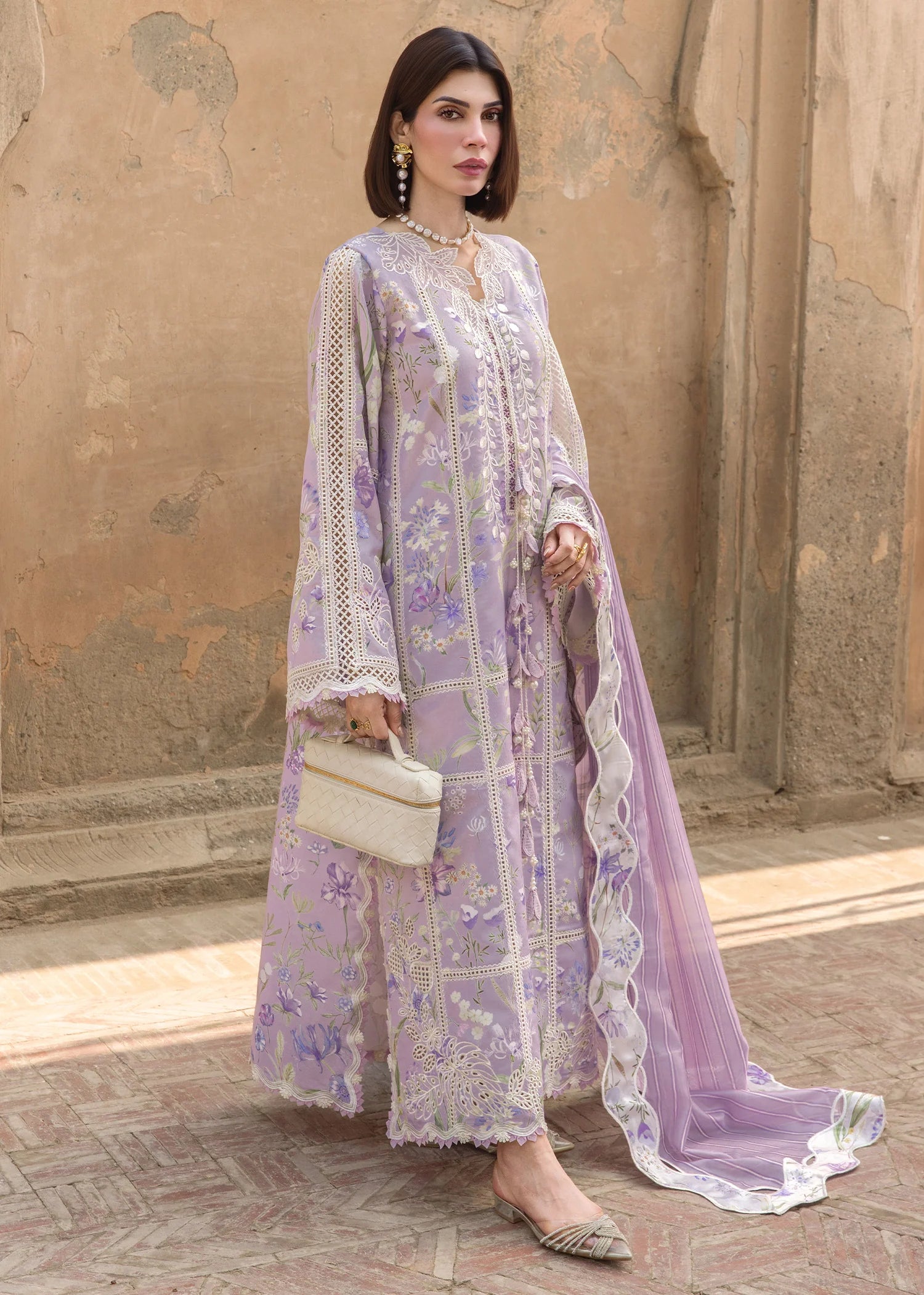 3Pc Unstitched Color: Lavender Description: Printed, Embroidered And Cutworked Front Center Panel Printed, Embroidered And Cutworked...