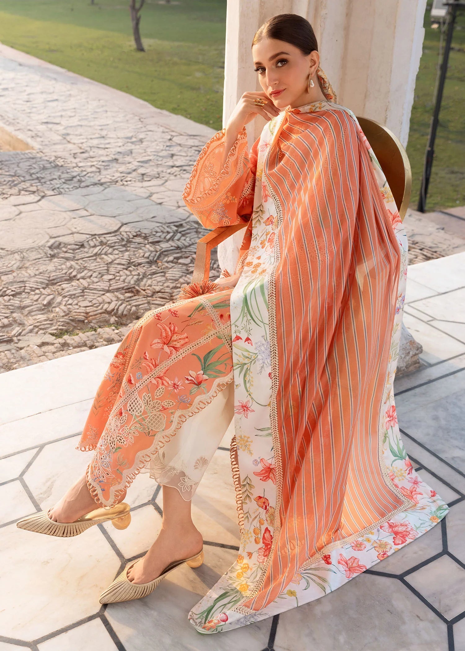 3Pc Unstitched . Color: Sunset Description: Printed, Embroidered And Cutworked Front Center Panel Printed, Embroidered And Cutworked...