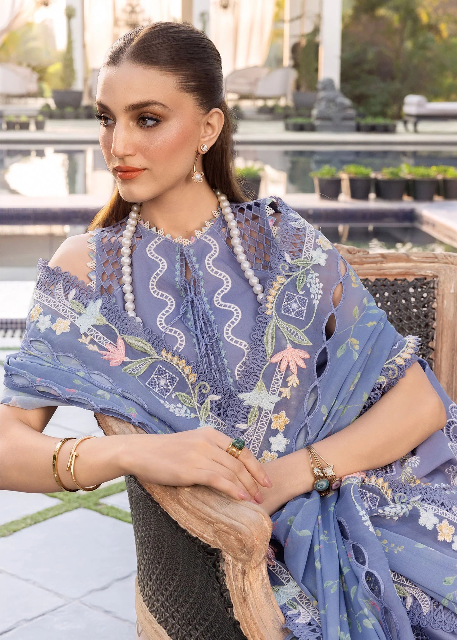 3Pc Unstitched Color: Deep Periwinkle Description: Embroidered And Cutworked Front Panel. 0.70m Embroidered Fabric For Sleeves. Embroidered...