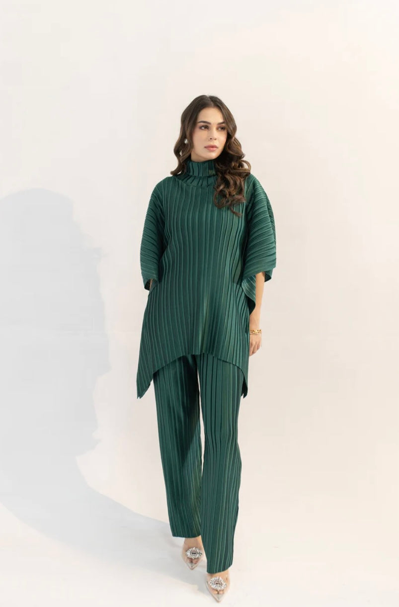 Hassal | Sevda Dark Green Pleated Set