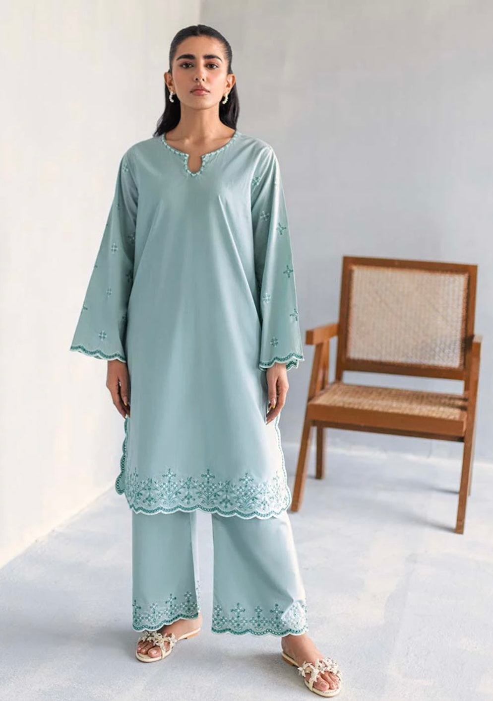PRODUCT DETAILS 2Pc Ready to wear Color: Teal Fabric: Cross Hatch This enchanting co-ord set, drenched in...