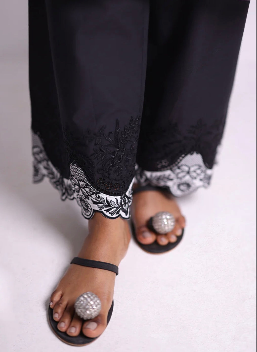 PRODUCT DETAILS COLOR: Black FABRIC: Pure Cotton Izaar with fine embroidery using Schiffli technique and scallop cutwork on breathable cotton cotton fabric with...