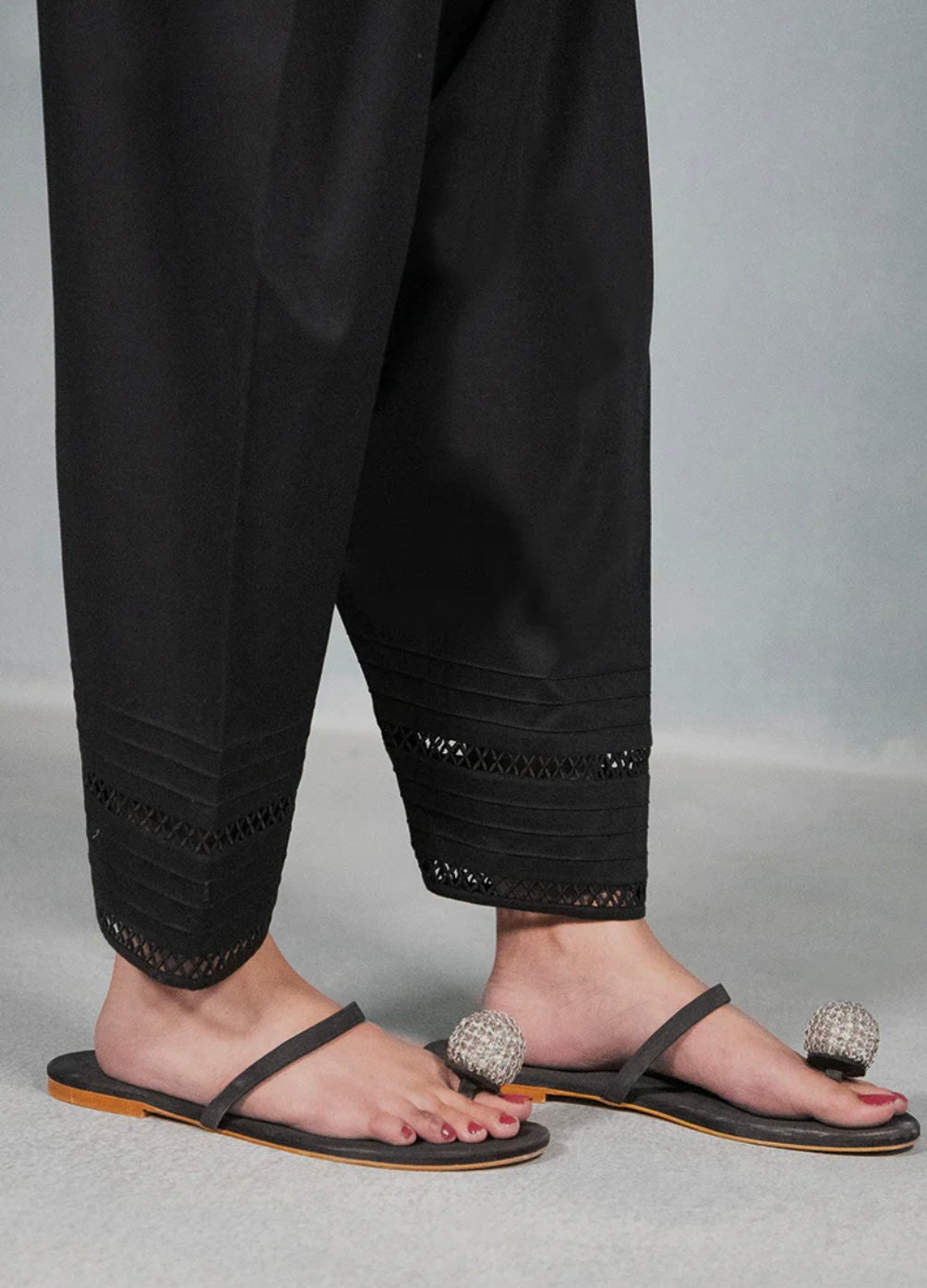 PRODUCT DETAILS COLOR: Black FABRIC: Pure Cotton The timeless silhouette of this black lace shalwar is meticulously detailed with...