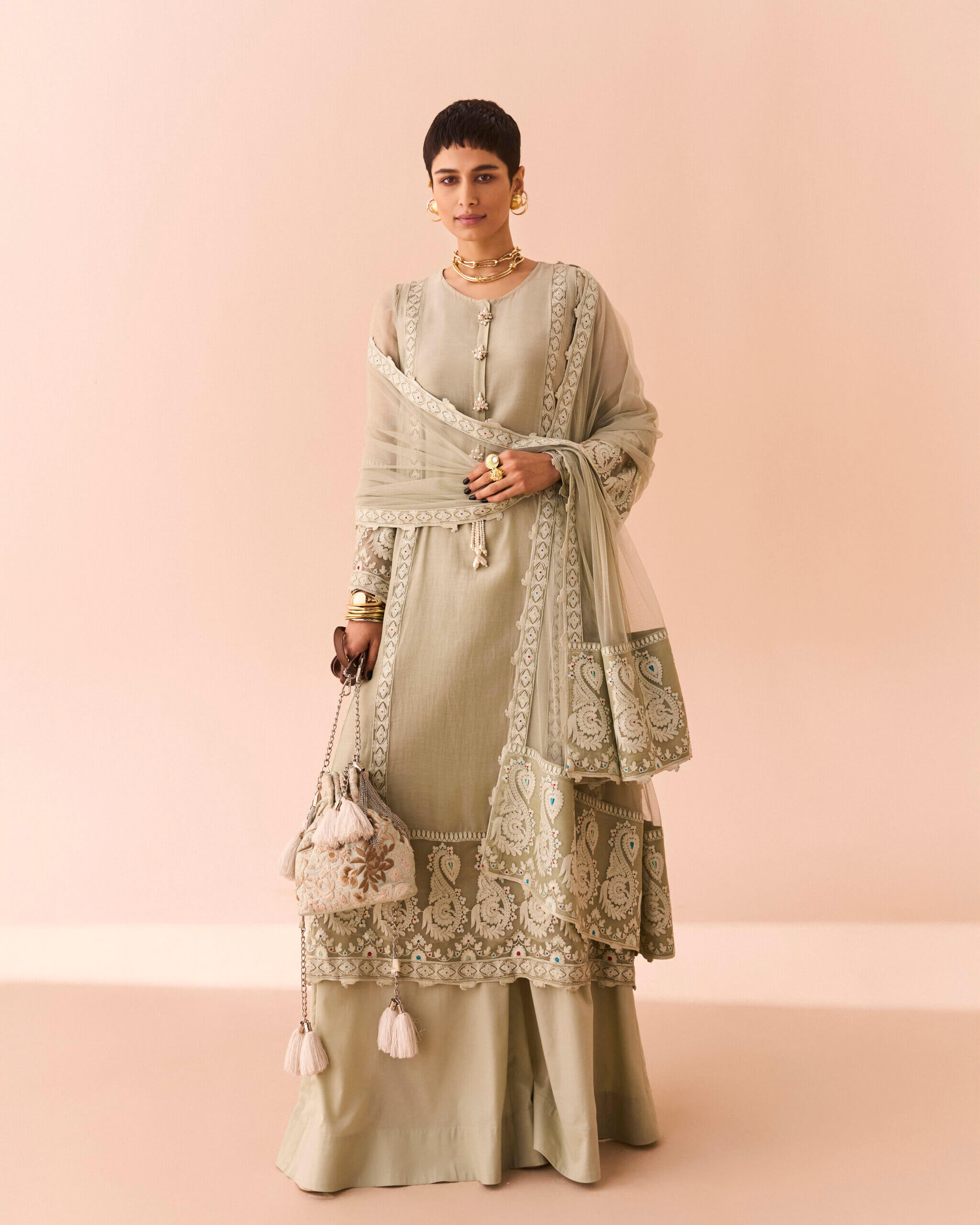 shirt, full sleeveless lining, flared pants, dupatta