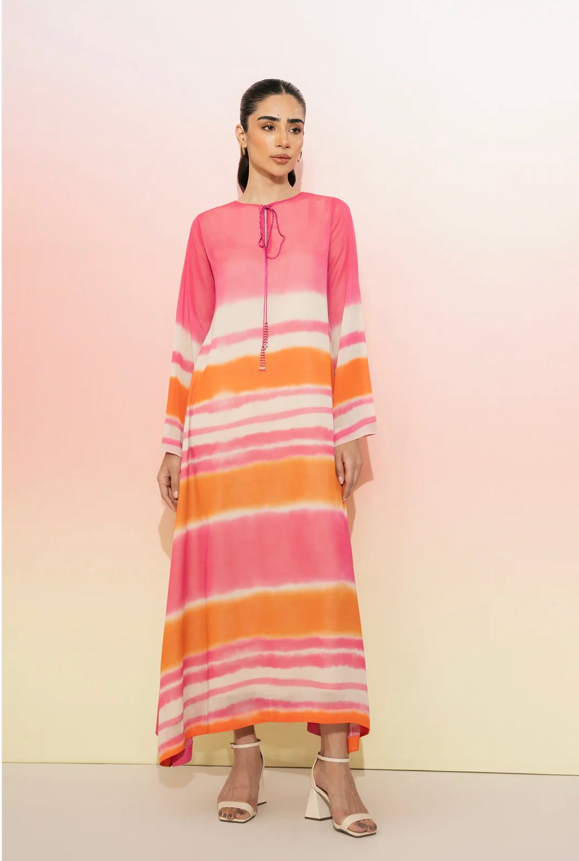 PRODUCT DETAILS This printed dress, made in soft georgette chiffon fabric, features crew neckline with crystals &...