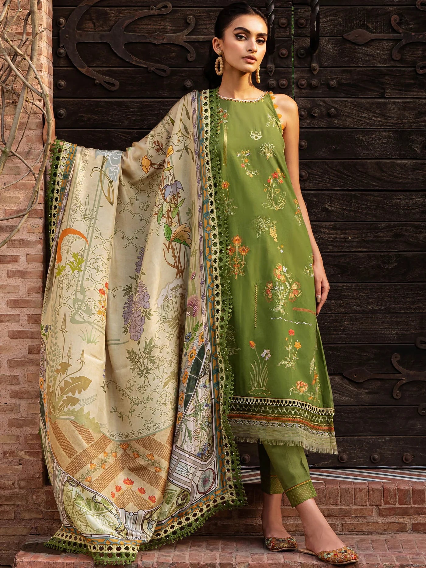 PRODUCT DETAILS 3Pc Unstitched Kirat”,inspired by the iconic Art Nouveaumovement, features asymmetrical shapes and motifs embroidered across...