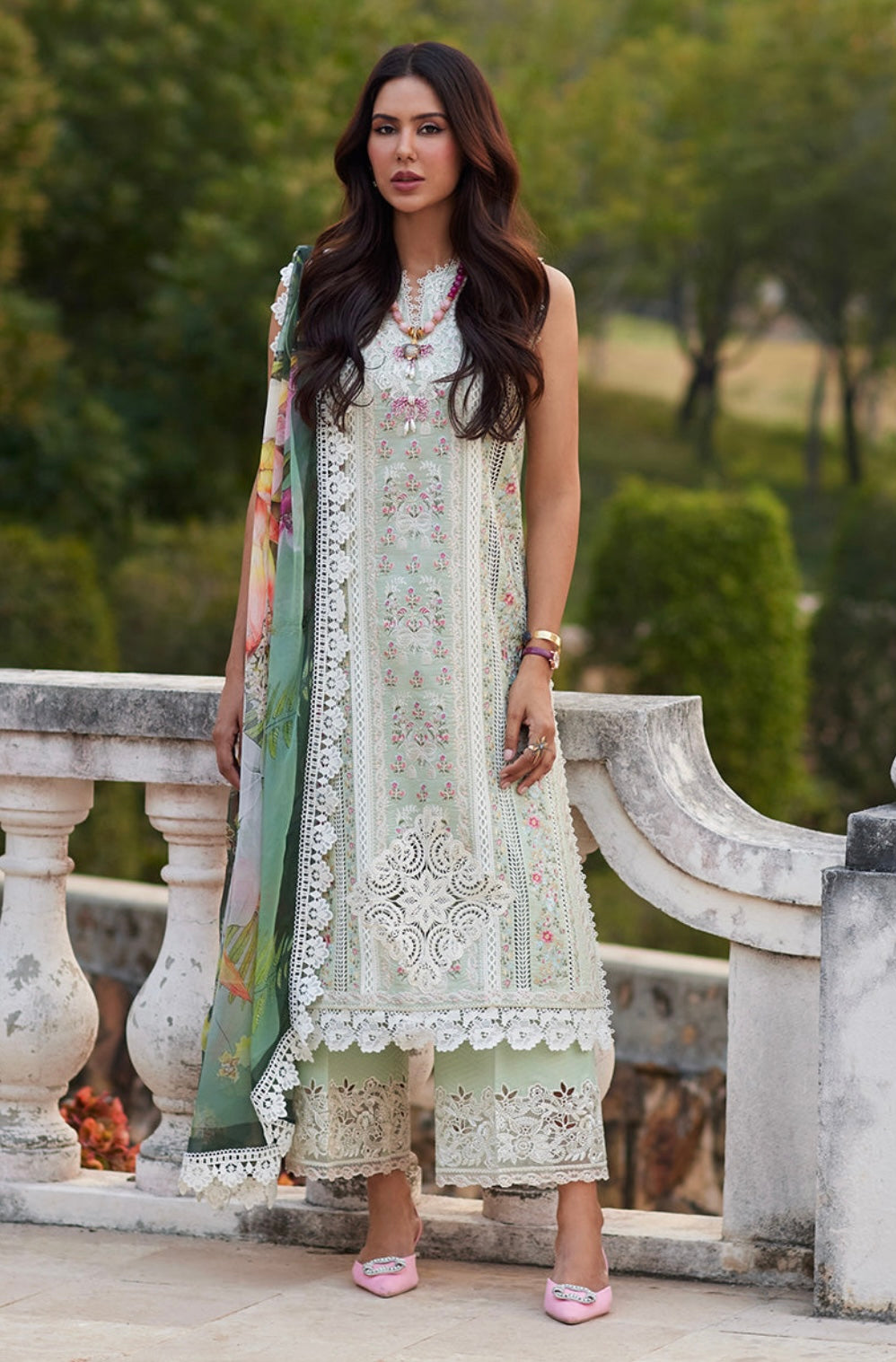 PRODUCT DETAILS 3Pc Unstitched Color: Mint green Fabric: Lawn Ravenna Romance, is crafted with exquisite precision, this ensemble boasts...