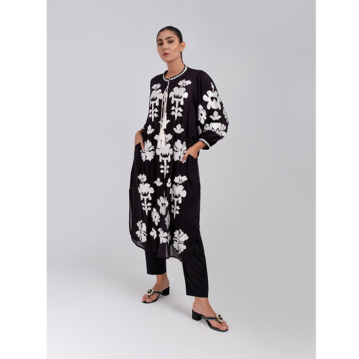 PRODUCT DETAILS Color: Black/White Fabric: Linen Work details: Aari embroidered Matching pants can be added on an...