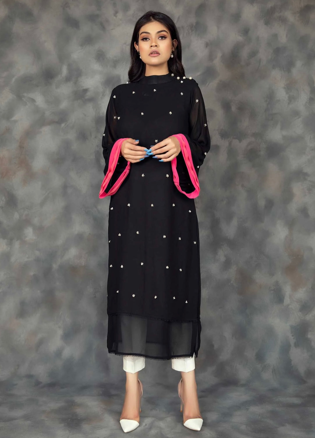 PRODUCT DETAILS Color: Black Fabric: Georgette Chiffon Black chiffon georgette beaded top handworked all over with small flowers made...
