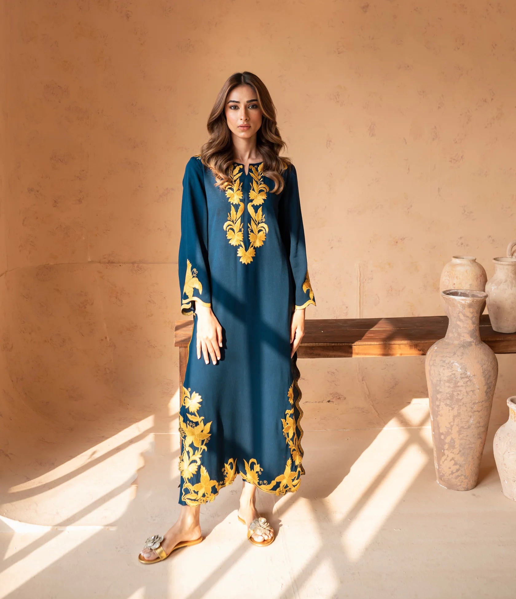 PRODUCT DETAILS 2Pc Ready to wear Colour: Teal Blue Fabric: Karandi suitable for autumn winter A striking display of...