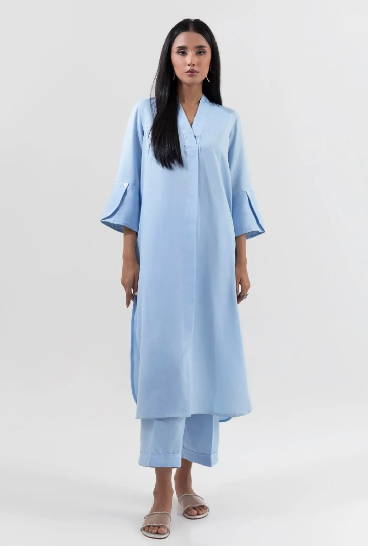 PRODUCT DETAILS Description: Blue ensemble for an everyday elegant look. Color: Light Blue Fabric: Herring bone Cut:...