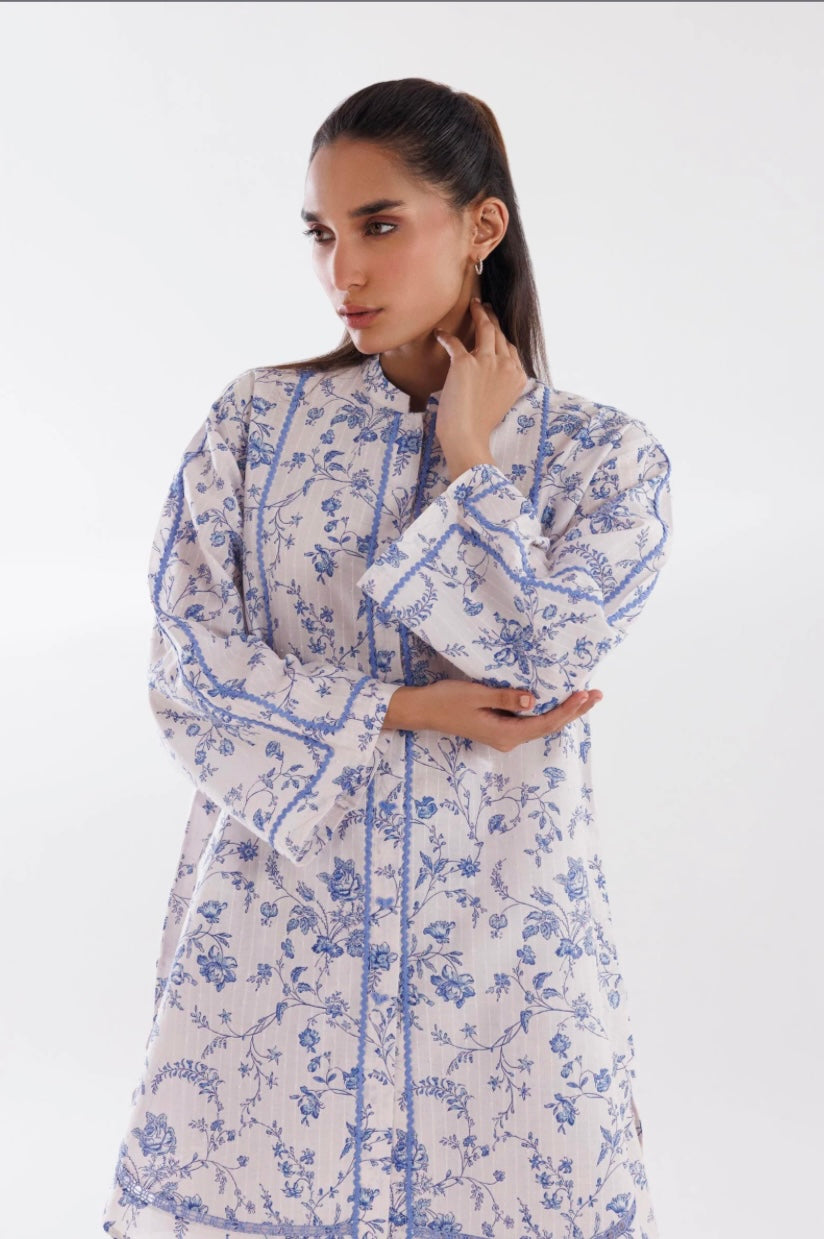 2Pc Ready to wear Color: White & Blue Fabric: Brochia Cut: Boxy Dupatta: Not Included Trouser: Skinny...