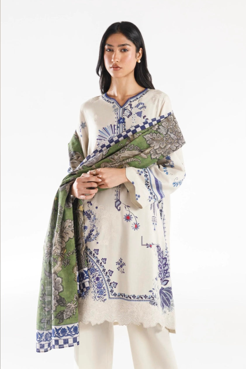 3Pc Ready to wear Color: Off White Fabric: Viscose Linen Cut: Round Slip: Not Included Dupatta: Printed...