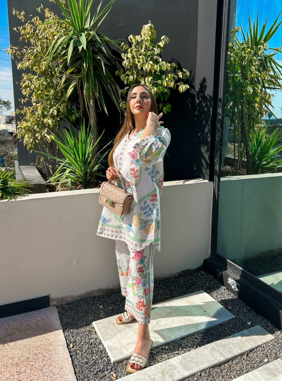 2Pc Ready to wear Color: Multi Fabric: Fancy Slub Cut: Loose Style Dupatta: Not Included Trouser: Culotte...