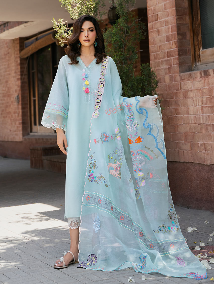 PRODUCT DETAILS 3Pc Ready to wear Colour : Blue Kurta khaddi Net Skinny Shalwar Pk Raw Silk...