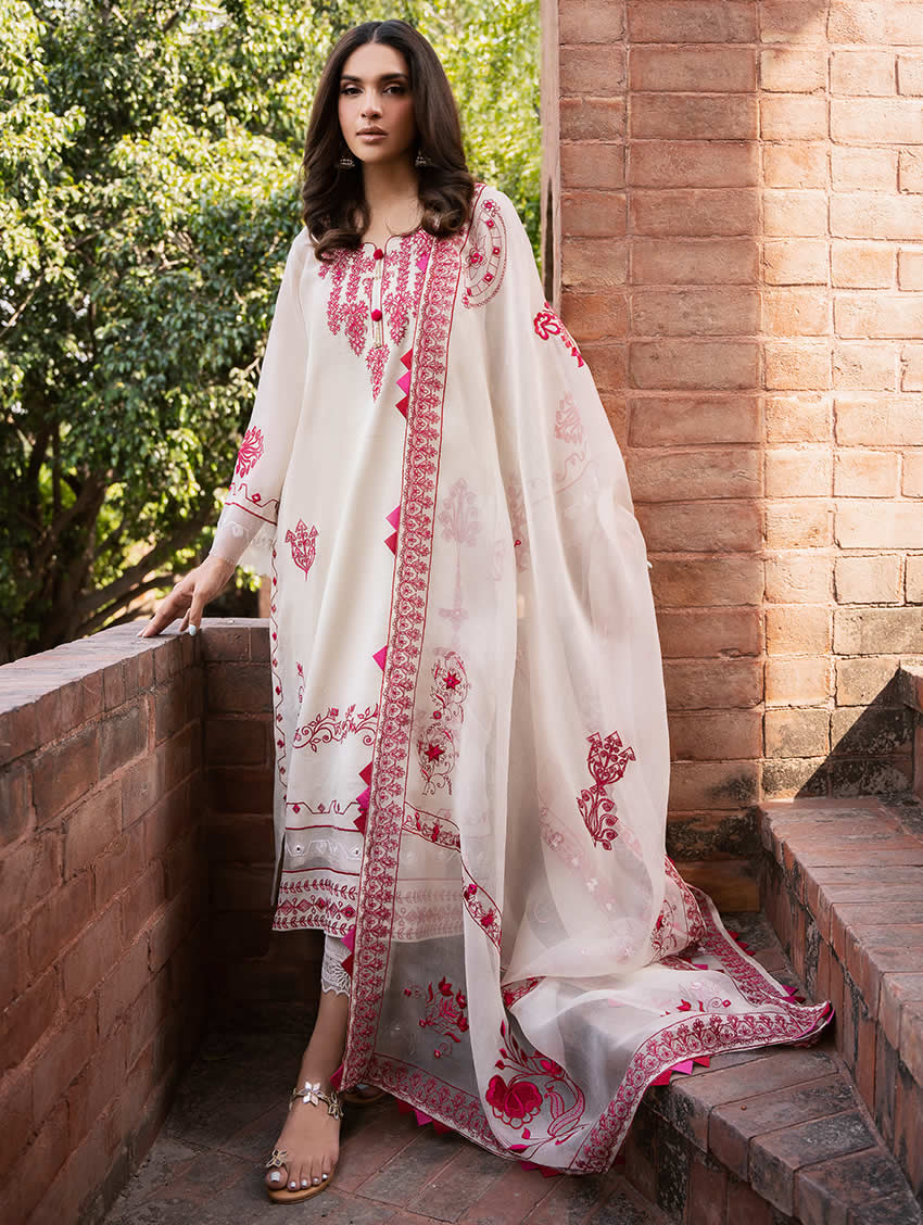 PRODUCT DETAILS 3PC Ready to wear Colour : Ivory Kurta khaddi Net Skinny Shalwar Pk Raw Silk...