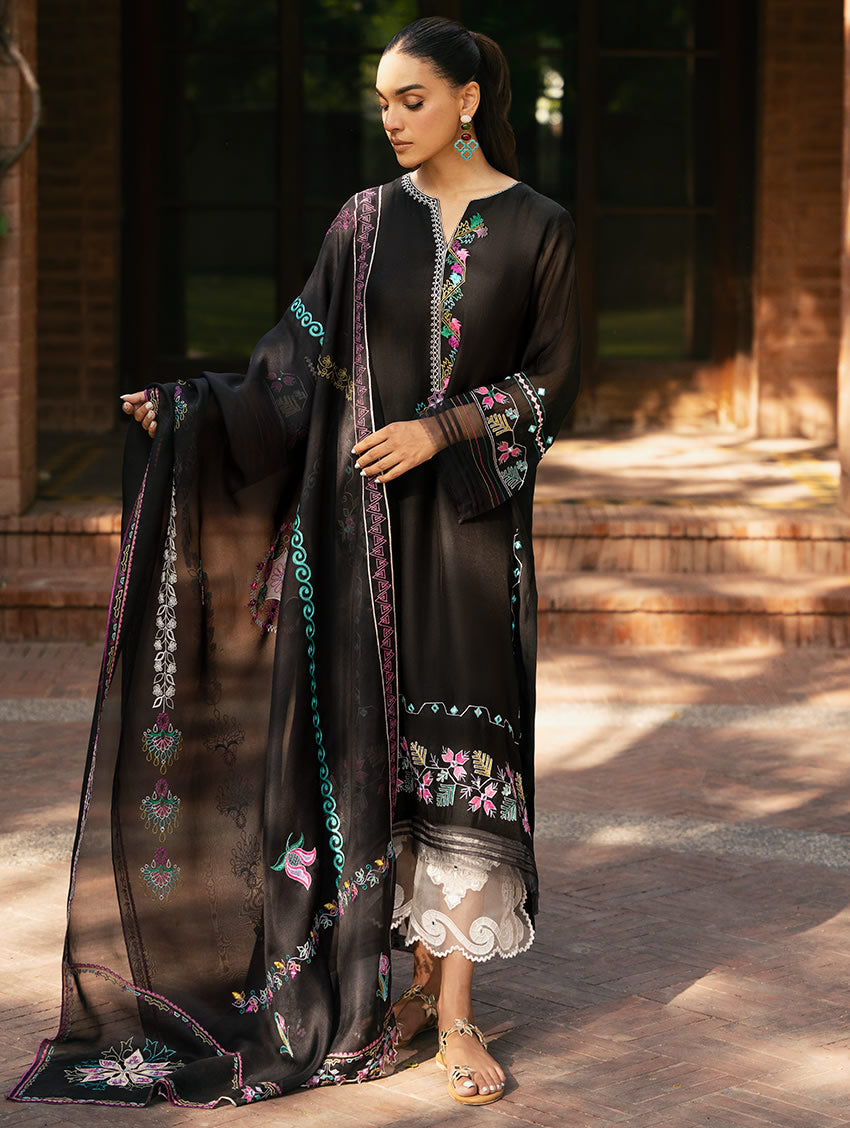 PRODUCT DETAILS 3Pc Ready to wear Colour : Black Kurta Kora Cotton Culottes Pk Raw Silk Dupatta...