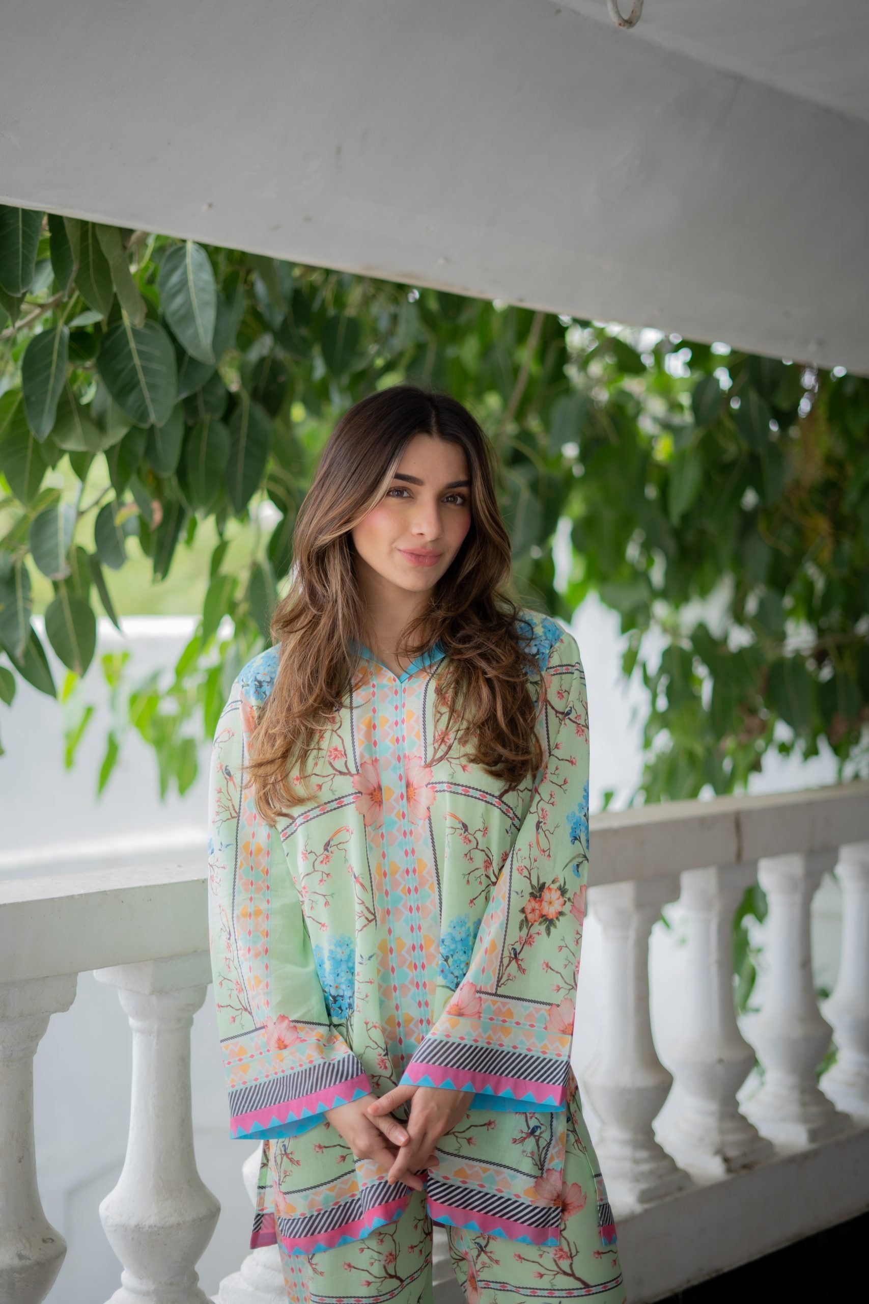 PRODUCT DETAILS 2Pc Ready to wear Colour :Green Fabric: Silk Lawn Delivery Time: 1-2 weeks