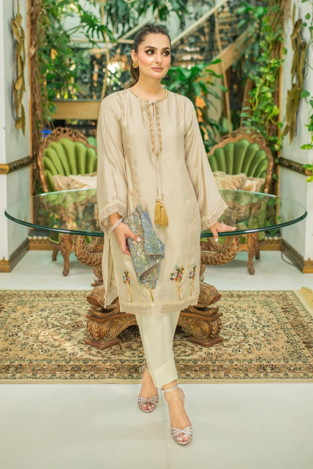 PRODUCT DETAILS 2Pc Ready to wear Color: Dove grey Fabric: Silk net Work Details: Hand work Fit:...