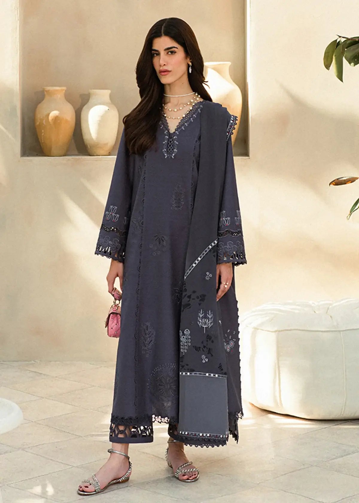 PRODUCT DETAILS 3Pc Ready to wear Slate grey textured lawn features a straight slight a-line silhouette, laser cut...