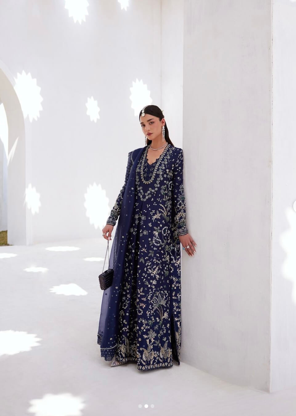 PRODUCT DETAILS Aroosh Stitched 3Pc The Midnight Blue outfit features a deep-U neckline, box pleated, floor length...