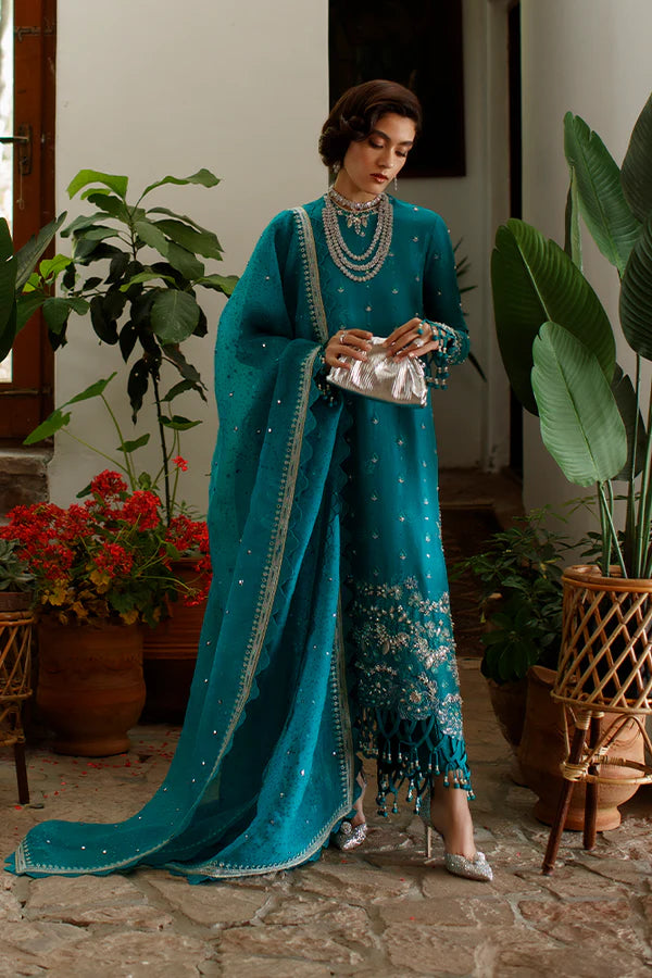 PRODUCT DETAILS 3PC Ready to wear SEA GREEN EMBROIDERED RAW SILK SHIRT WITH HAND EMBELLISHMENT. SHIRT FEATURES...