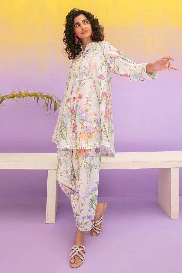 PRODUCT DETAILS 2 piece floral printed dress Featuring lace details Paired with matching shalwar Fabric: Printed Cotton...