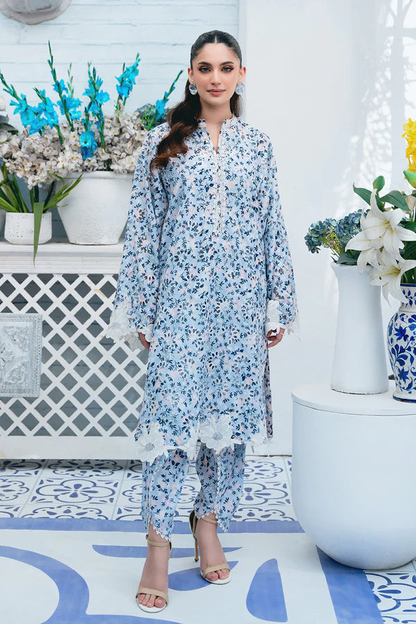 PRODUCT DETAILS 2Pc Ready to wear Fabric: Silk lawn 2pc Cool blue chikenkari shirt with floral borders...
