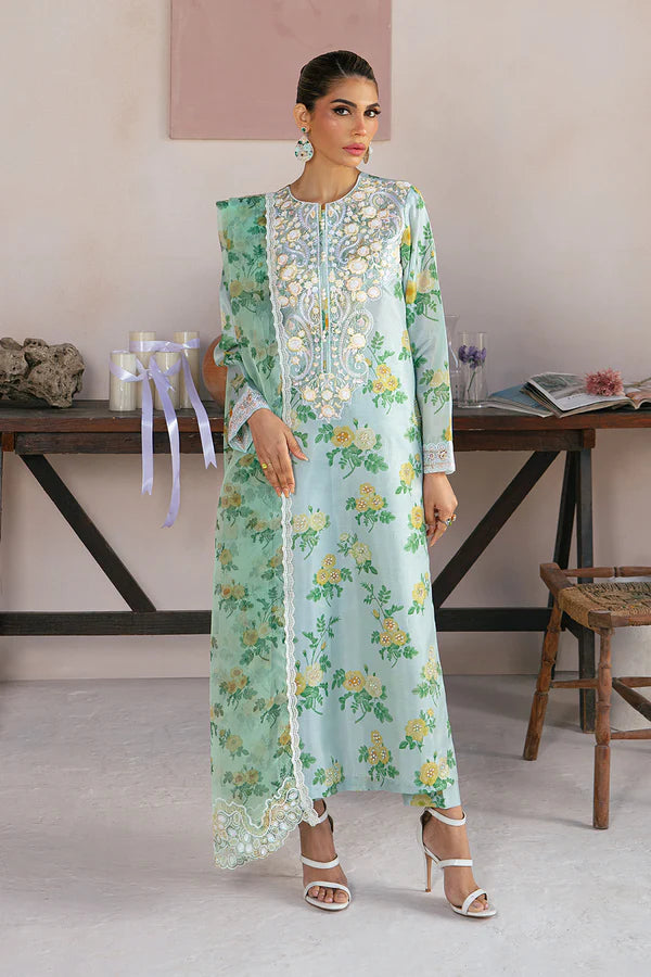 PRODUCT DETAILS 3Pc Ready to wear Color: Mint green Fabric: Tafetta print and Organza Embroidered and hand embellished...