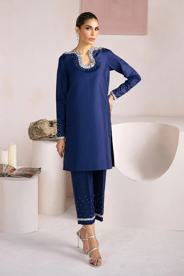 PRODUCT DETAILS 2Pc Ready to wear Color: Blue Fabric: Tafetta print and Organza Embroidered and hand embellished shirt...