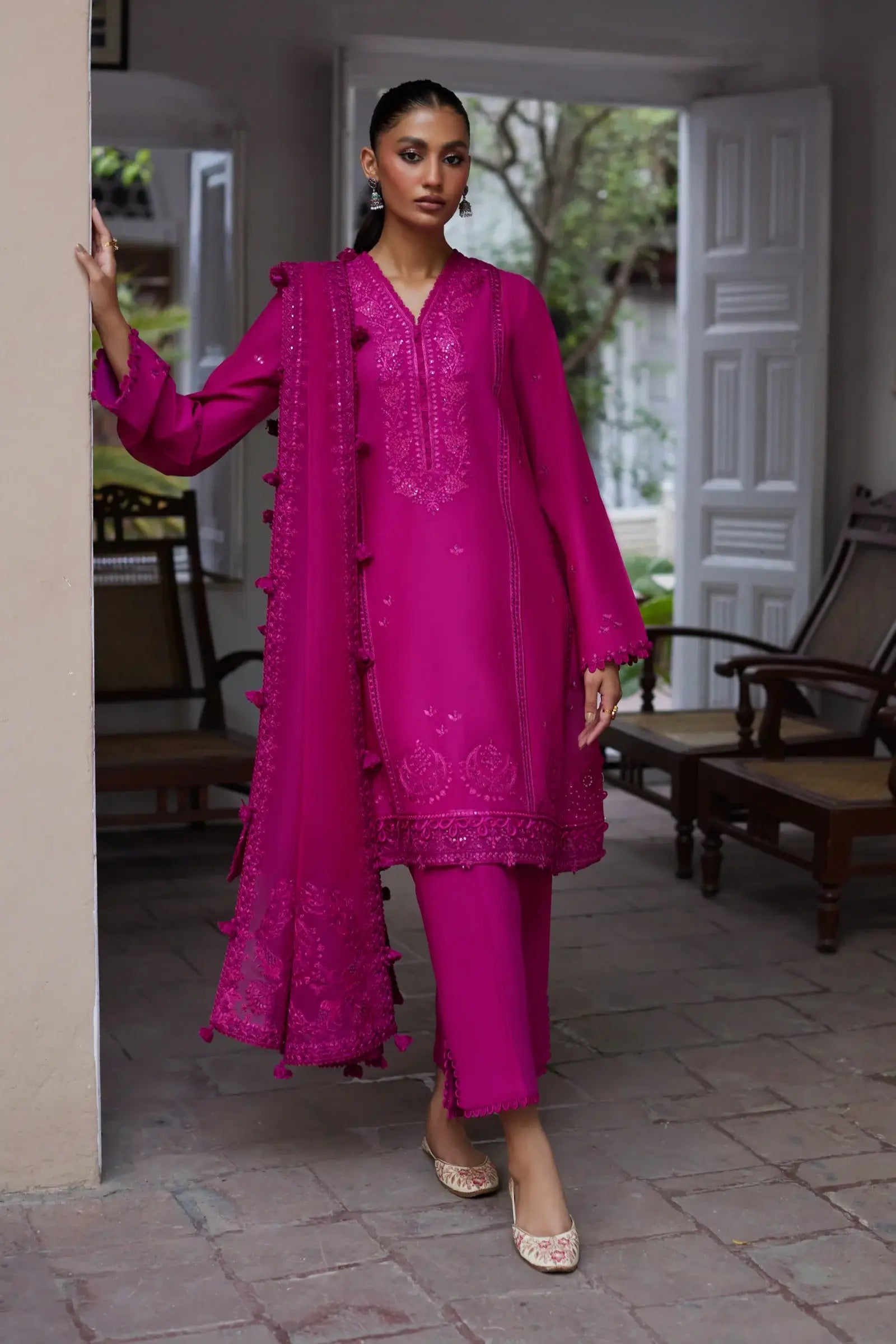 PRODUCT DETAILS 3Pc Unstitched An exuberant and exquisitely embroidered design, ‘Niamh’ shines in a vibrant fuchsia tone....