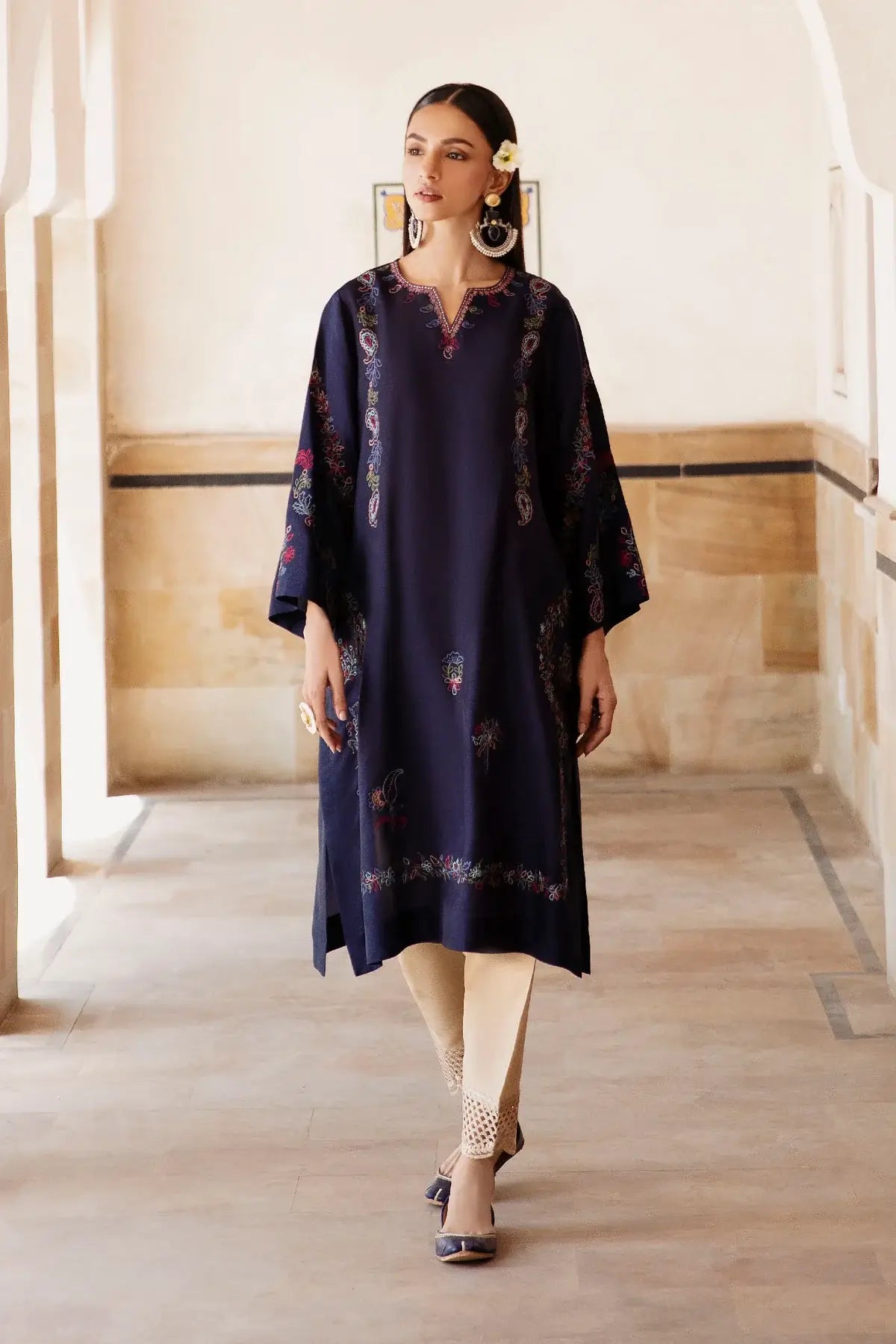 PRODUCT DETAILS 2PC Ready to wear Colour: Navy Blue Shirt & Pants Fabric: Katan Silk Delivery time:3...