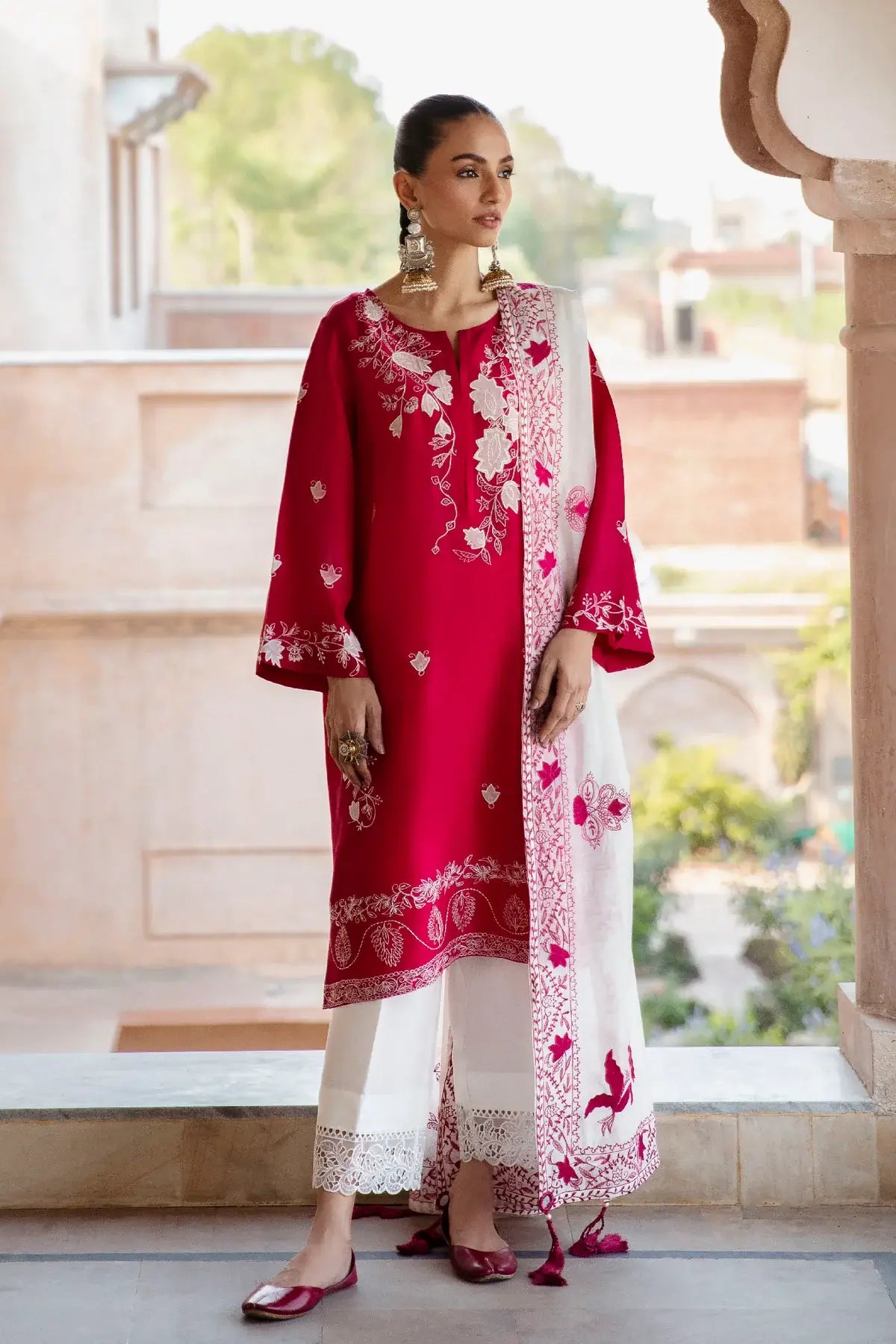 PRODUCT DETAILS 3PC Ready to wear Colour: Candy Red and White Shirt Fabric: Korean Silk Pants Fabric: Korean Silk...