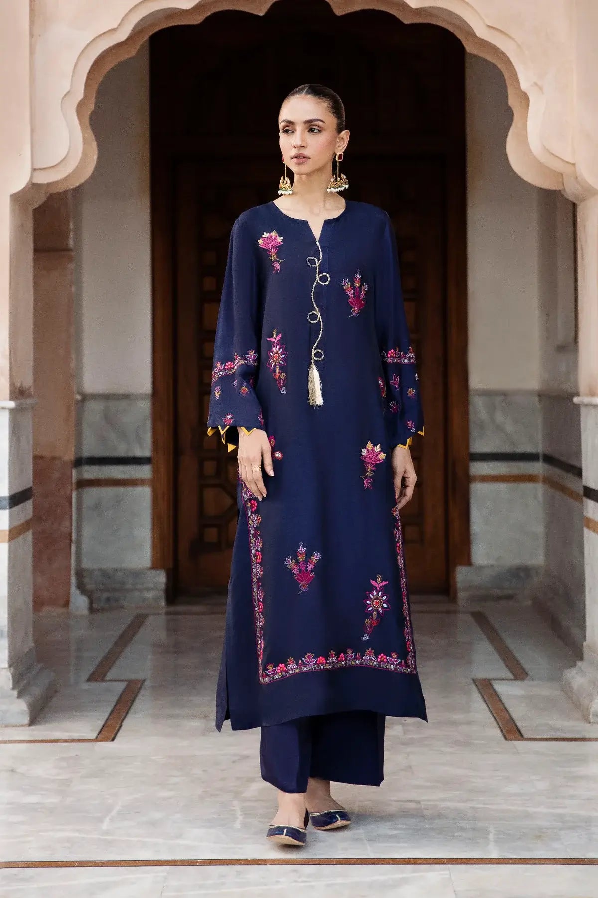 PRODUCT DETAILS 2Pc Ready to wear Colour: Navy blue Shirt Fabric:Katan silk Pants Fabric:Katan Silk Delivery time:...